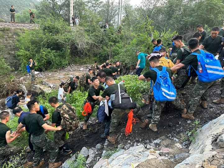 滂沱大雨中,門頭溝、房山、昌平……北京相關部門、鐵路部門、駐京部隊、武警、消防官兵、地方百姓齊心協力,展開了一場爭分奪秒的大救援。