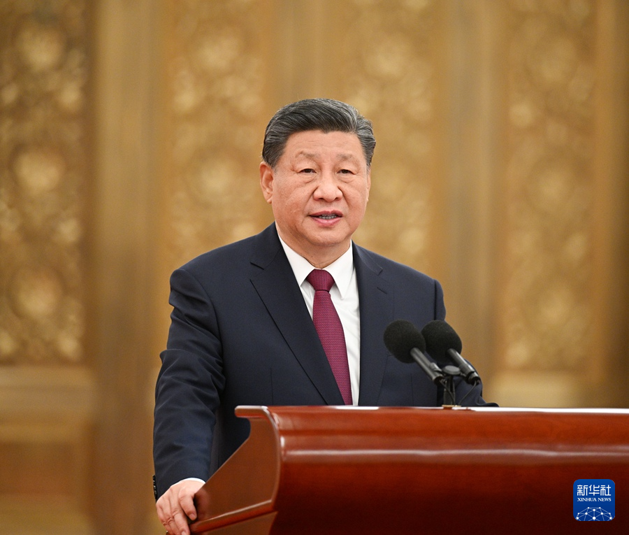 12月29日,黨和國家領導人習近平、蔡奇等在北京人民大會堂接見參加2023年度駐外使節工作會議的全體使節。這是習近平發表重要講話。新華社記者 李學仁 攝